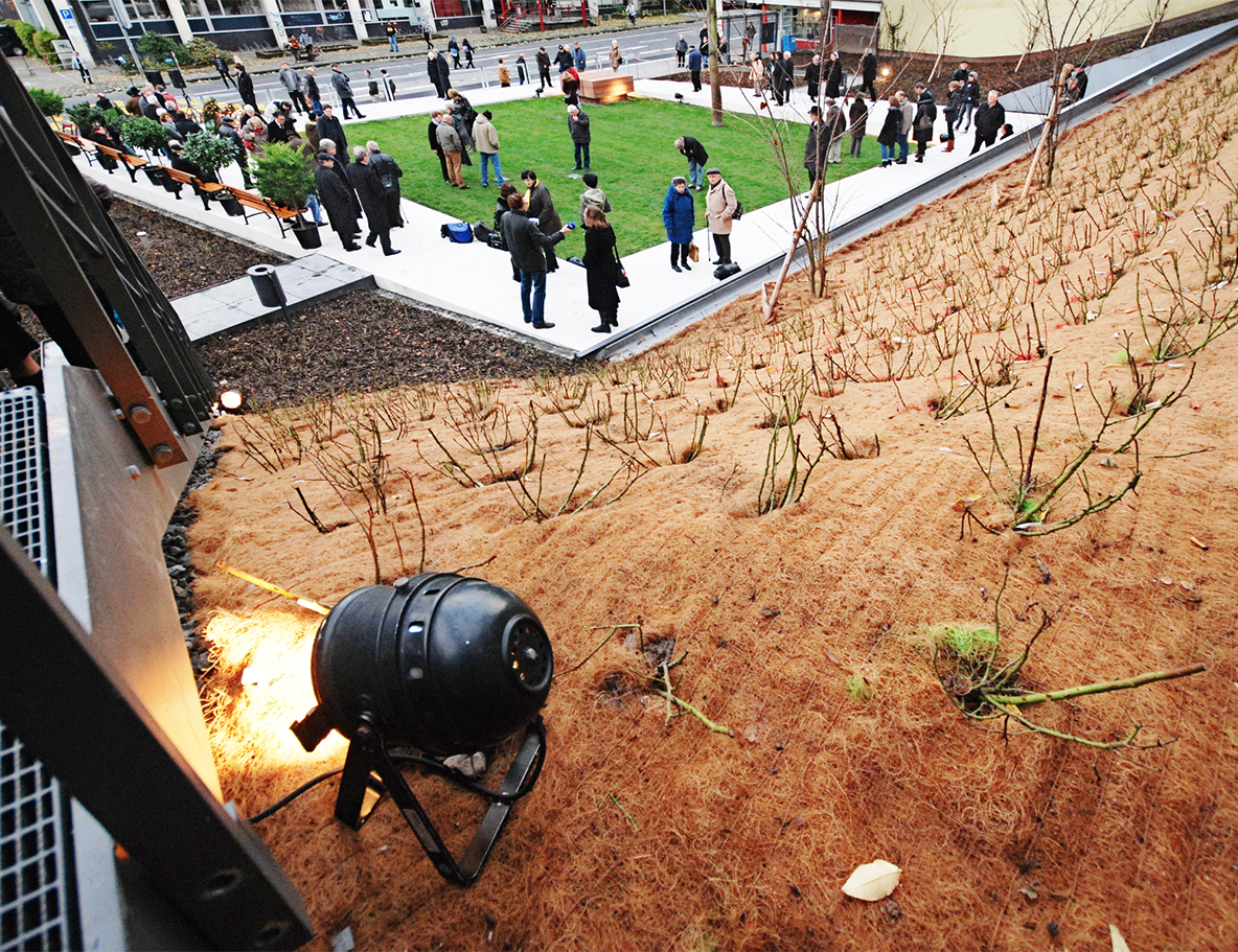 As an artist who tends to make his mark with temporary and very directly site-specific projects, designing the memorial on the site of the former synagogue was a particular challenge. A memorial is a warning and a reminder, usually set permanently in sculptural form in stone or bronze, so that the eternal validity of the terrible event is not forgotten. Although my tried and tested tools come from sculpture, they perceive space as a lived space and take it seriously by listening to the users of this place in a communicative way and giving them a voice. It was not the aim of the artistic team to fill the gap that was torn during the Reichspo-gromnacht, but to make it visible and allow it to be heard again and again. We were looking for a way to formulate a permanent place of remembrance, which, in constant change, invites renewed communication between urban society and this place every year.
